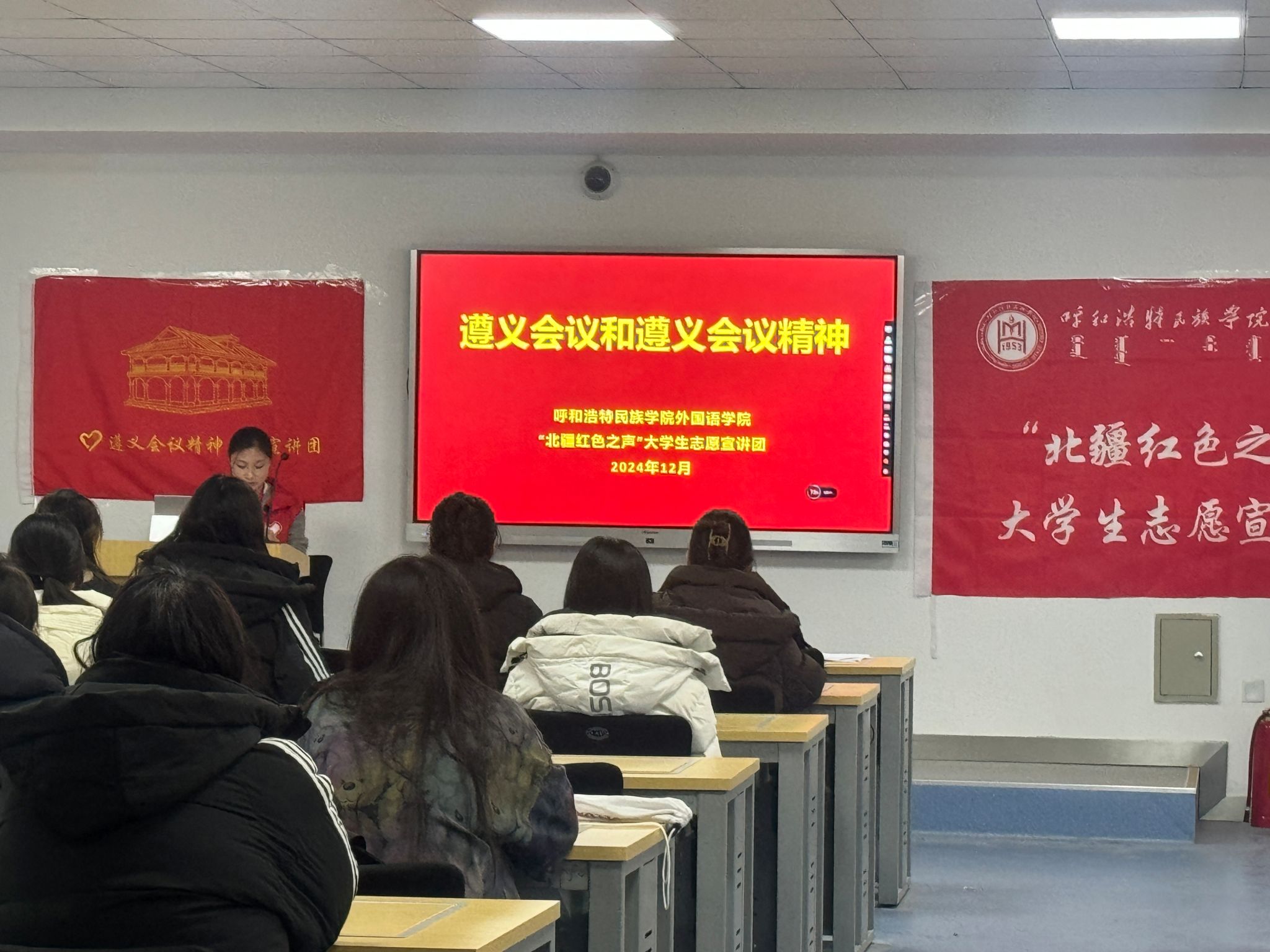 12月12日晚7时30分,外国语学院、商学院学生党支部在都林楼506教室联合开展“传承红色基因 赓续红色血脉”主题党日活动,本次活动邀请2024年全国大学生遵义会议精神志愿宣讲团入选团队——365英国上市公司“北疆红色之声”大学生志愿宣讲团,面向全体学生党员进行了宣讲。本次党日活动由外国语学院学生第一党支部组织委员乔雅东主持活动。