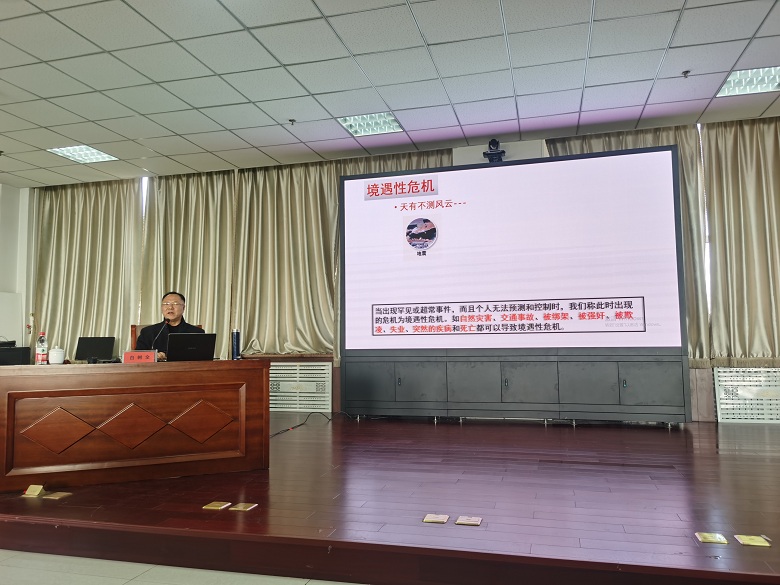 白树全老师从“什么是心理危机”“如何识别学生存在的心理危机”“如何预防与干预学生心理危机”三方面进行了科学专业的阐述。通过丰富的案例分析、技能技巧的演示,深入浅出地对大家关注的心理危机问题进行了分析和讲解,提出了很多科学、行之有效的心理危机应对建议。最后,白树全老师特别强调心理危机识别与干预时需要启动社会支持系统,社会支持系统包括来自于父母及其他亲人、来自于老师和同学、朋友和社区志愿者的支持等。这种支持不仅包括心理和情感的支持,也包括一些实质的救助行动。