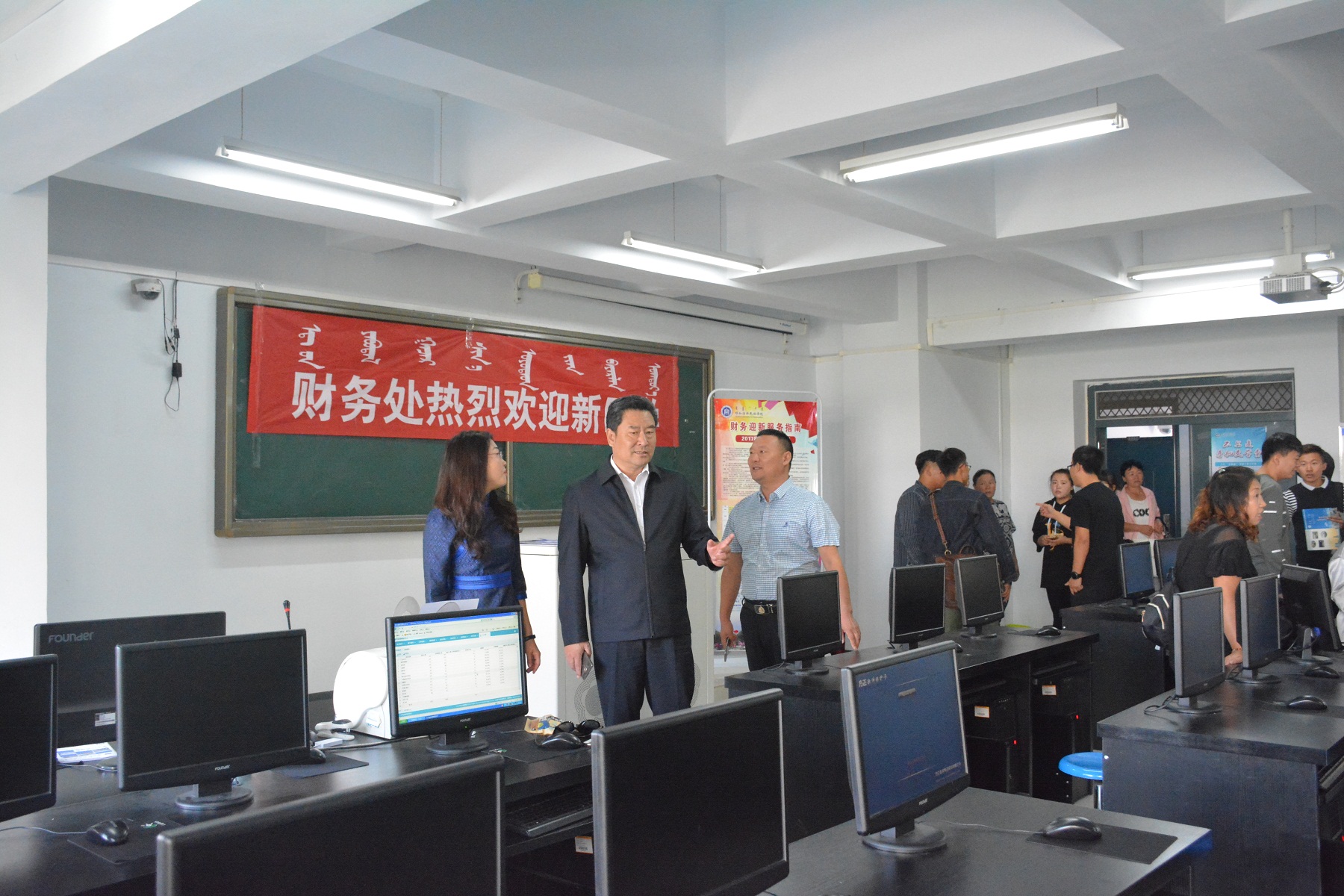下午,格日乐图院长来到各部门迎新工作点视察,认真听取迎新工作汇报,对工作在迎新一线的广大师生表示感谢。同时要求,要周密部署、精心安排,确保新生安全文明入学,快捷方便报到,做好今年迎新工作的各项工作,真正让学生满意、家长安心、学校放心。在家长休息区,格院长与新生家长亲切交流,还拉起了“家常”,使家长放心把孩子交给学校。随后,格院长还来到新生宿舍,关切地询问了新生对环境是否适应,对学校各方面是否满意等,并向新生提出了新的期望,鼓励他们刻苦学习、珍惜大学时光,确定目标、描绘好属于自己的梦想蓝图,走向成功。