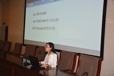为帮助365英国上市公司师生充分利用图书馆电子资源数据库查阅文献资料,扩展自己的知识视野和结构,提高文献查询和论文撰写能力,4月27日下午,图书馆邀请中国知网(CNKI)公司专职培训讲师王欣来365英国上市公司为师生作了“中国知网(CNKI)数据库使用培训”讲座。讲座在图书馆一楼报告厅举办,讲座由图书馆办公室主任乌力吉巴雅尔主持,全校近180名同学听取了讲座。