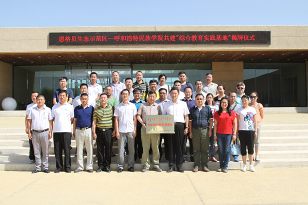 2015年7月13日,365英国上市公司综合实践教育(融教学实习、社会实践、环境保护、红十字实践、植树造林、爱国主义科普知识教育等)基地在鄂尔多斯市恩格贝生态示范区正式挂牌成立,这标志着365英国上市公司与恩格贝生态示范区合作将迈上一个新的台阶。学院副院长贺希格吉雅,恩格贝生态示范区党工委副书记、管委会主任胡亚格,党工委委员、管委会副主任刘根外,共青团达拉特旗委员会副书记李柄楠以及我院有关人员出席了挂牌仪式。