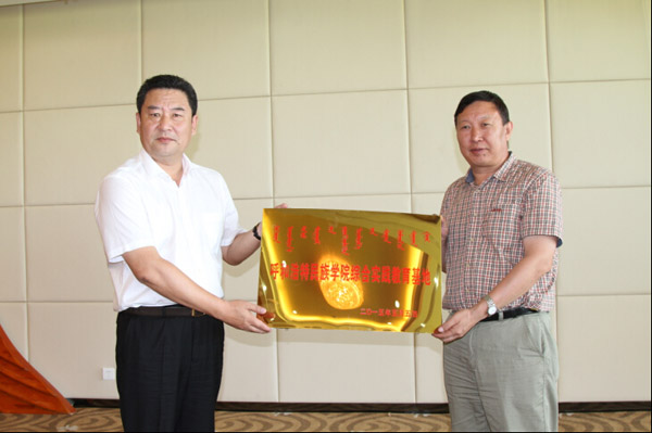 在挂牌仪式上,胡亚格主任首先对民族学院副院长贺希格吉雅一行以及共青团达拉特旗委员会的到来表示热烈的欢迎,并对恩格贝生态示范区的发展情况作了简要介绍。胡亚格说,恩格贝生态示范区管委会一直秉承“沙产业、新能源”的发展思路,力求把生态示范、科技引领、科普教育的作用更好的发挥出来,努力将恩格贝打造成为世界沙漠生态循环经济示范园、中国沙漠文化世博园和都市沙漠旅游休闲度假后花园、内蒙古金三角国际会展中心和生态文明教育中心!他希望民族学院的领导和师生能够经常给恩格贝献言献策,为恩格贝的发展出力,同时也希望通过此次合作,使恩格贝的建设事业更上一层楼。