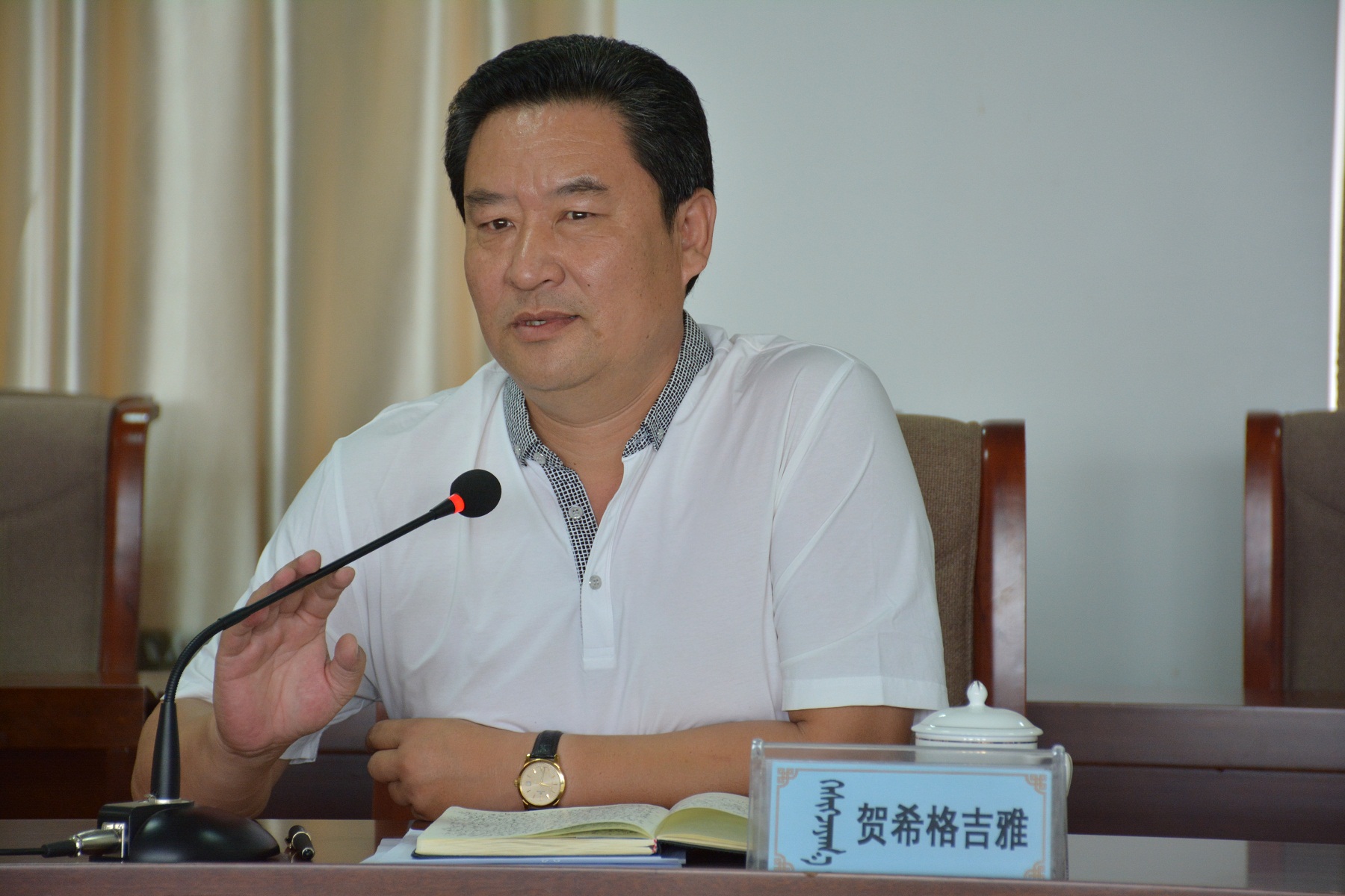 最后,贺希格吉雅副院长作总结讲话时提出具体要求,一是要求各部门、系部高度重视,精心组织,统一思想,要“以学生为本”为宗旨,热情、周到、便捷、井然有序地为新生和家长服务,展示出我院良好的精神风貌和办学理念;二是要服从指挥、服从调动,不扯皮、不推诿,学生处为牵头部门,其他部门做好配合工作;三是院办做好全局性的协调工作,安排好车辆调度,与呼市职业学院沟通协调,以备不时之需;四是团委要营造出良好的迎新氛围,做好服务工作;五是后勤管理处做好饮食服务、迎新期间的校园布置;六是保卫处做好校园维稳、车辆的管理及学生安全保障工作;七是网络中心做好网络安全及网络建设工作;八是教务处、财务处做好常规工作;九是各部门、系部做实、做细各项工作;十是要求各系部及时更新本部门网页并加强维护。