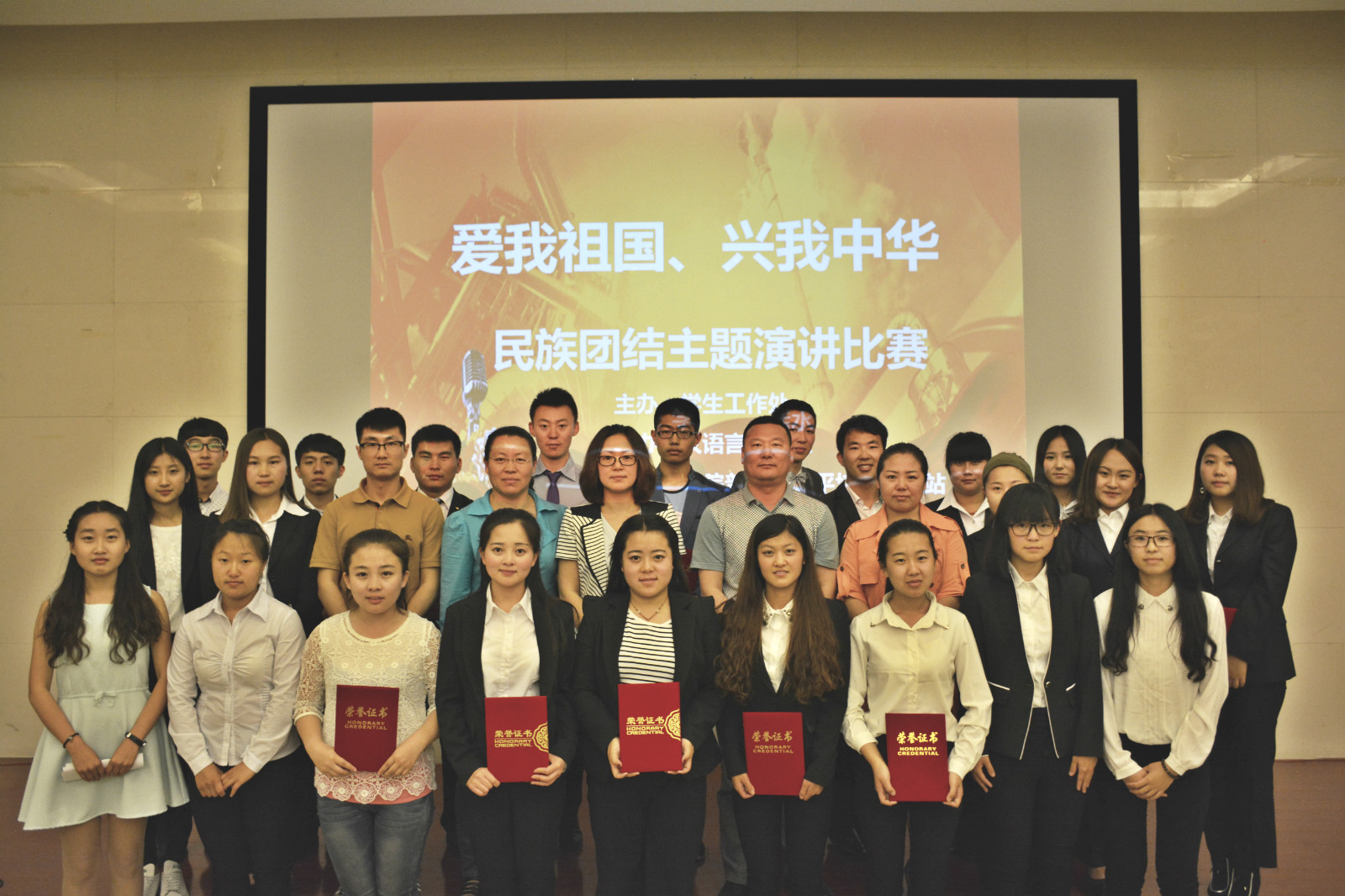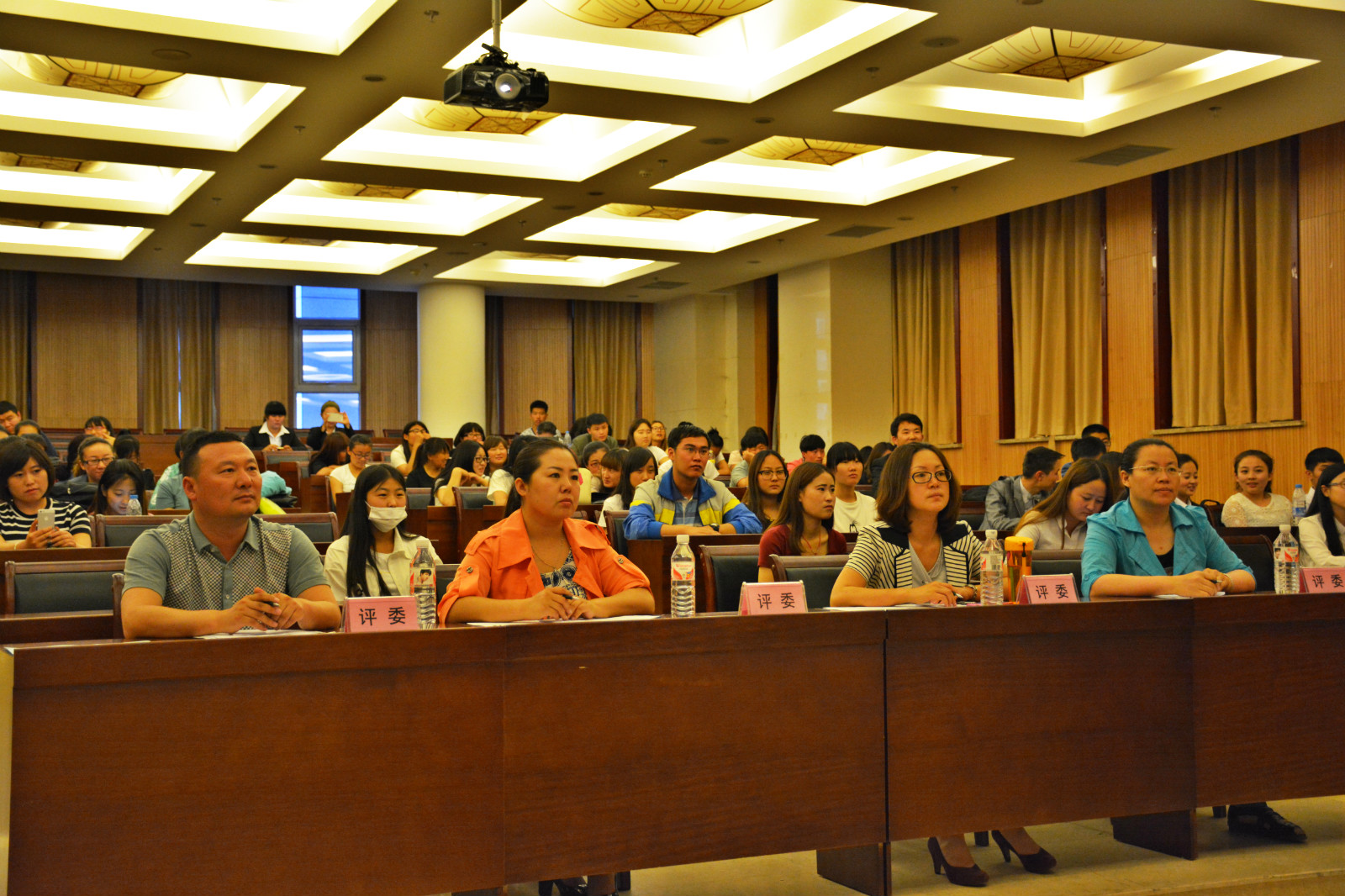为提高我院大学生的演讲和口才能力,展示新时代学子的青春风采,增强同学们的民族自信心和自豪感,增进思想交流,丰富校园文化生活,2015年6月5日晚7:30,由学生工作处主办、汉语言文学系承办、学院普通话测试站协办的主题演讲比赛决赛在图书馆一楼报告厅举行。汉语言文学系主任崔凤珍、学生工作处副处长包仓、院长办公室副主任高娃、组织统战部干部科科长包冬梅担任了此次比赛的评委。