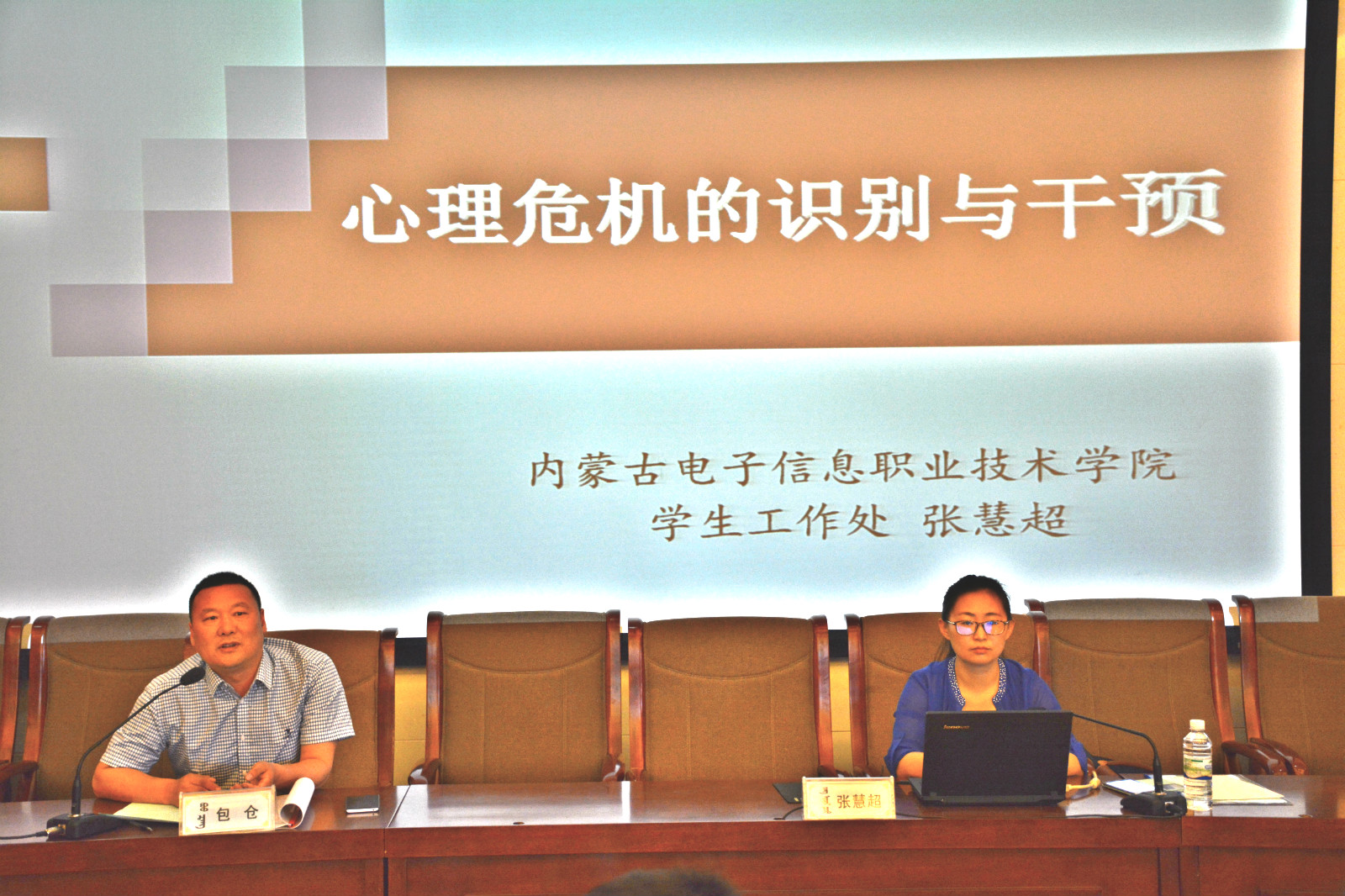 本次培训班邀请了自治区心理健康教育示范中心之一的内蒙古电子信息职业技术学院大学生心理健康教育中心张慧超主任,作了题目为《大学生心理危机的识别与干预》的专题讲座。