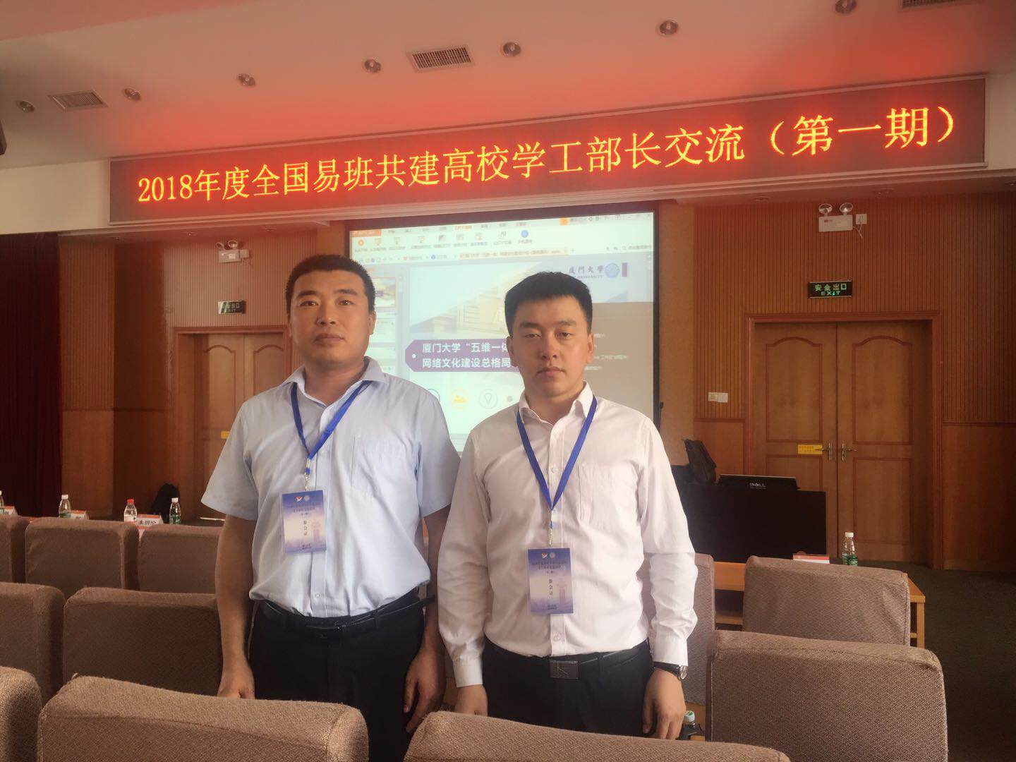 2018年度全国易班共建高校学工部长交流会(第一期)于4月13日在厦门大学举行,全国180所易班共建高校学工部部长,指导教师近300人参加本次交流活动,365英国上市公司代表学生处副处长陈青春和易班指导教师韩争运参加了本次交流会。