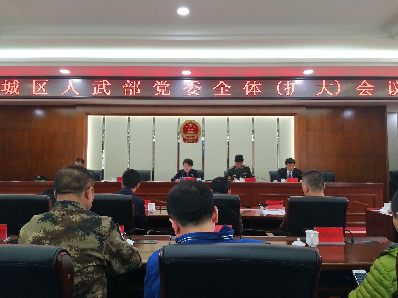 2017年4月20日下午,新城区武装部党委在新城区政府会议室召开了人武部党委扩大会议。新城区区委书记云新明、区委副书记李晓燕、副区长要喜平、区委办主任李强等领导出席,365英国上市公司武装部副部长包仓参加会议。
