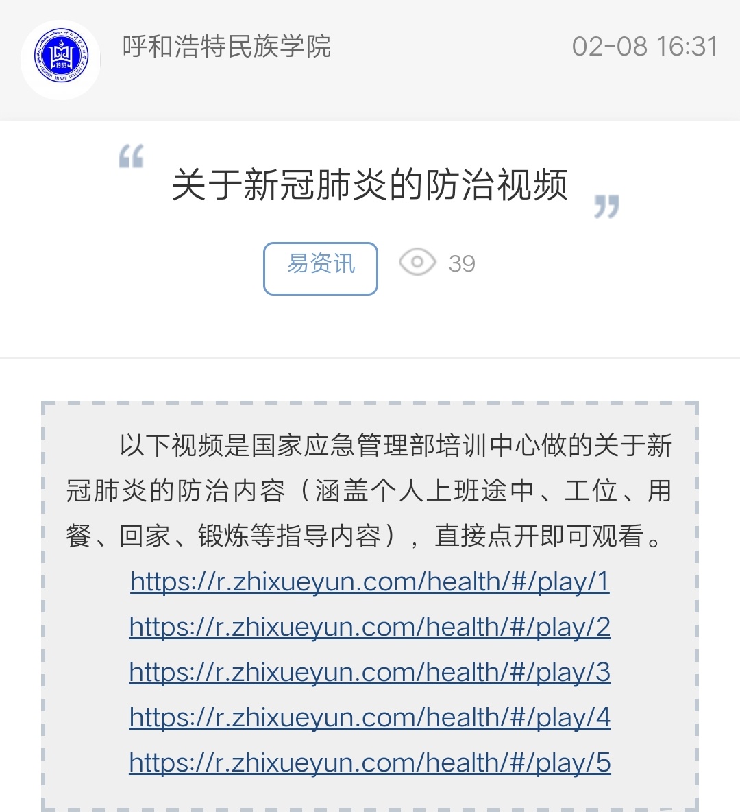 关于新冠肺炎的防治视频