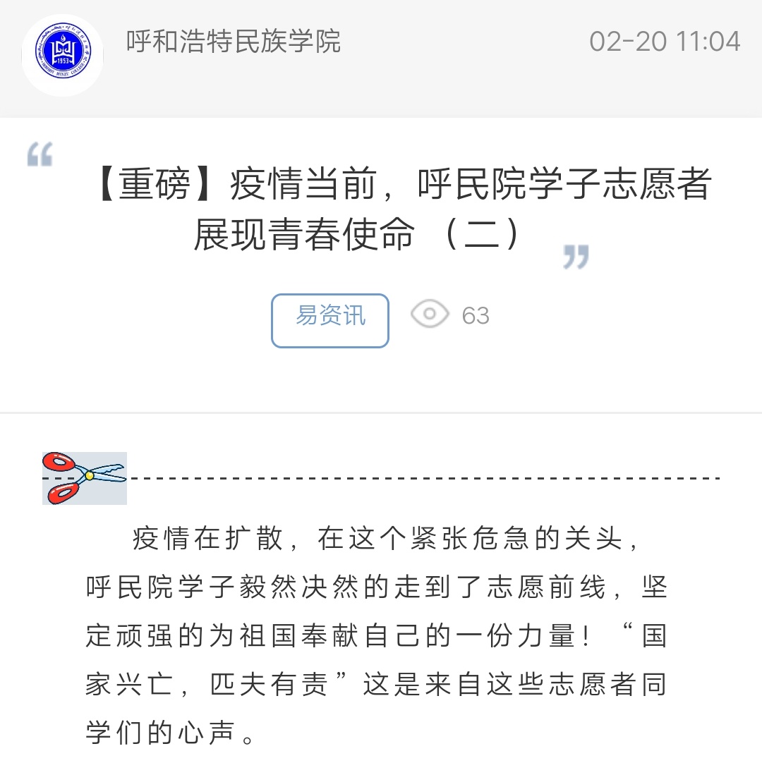 【重磅】疫情当前,呼民院学子志愿者展现青春使命 (二)