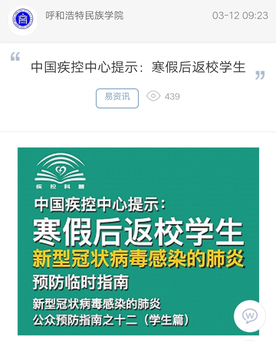 上一条:一堂“思政大课” 坚定呼和民院师生战”疫“信心