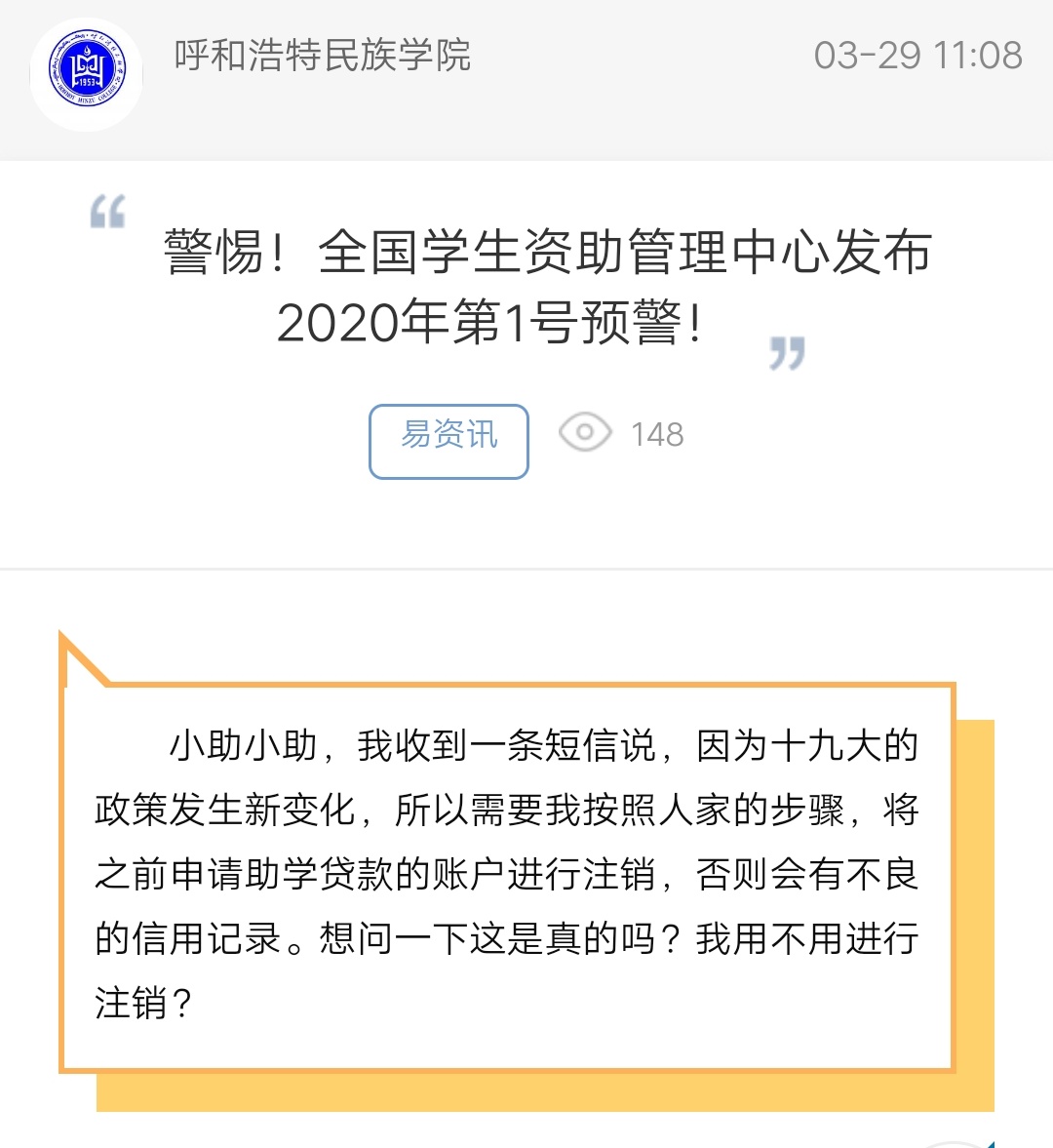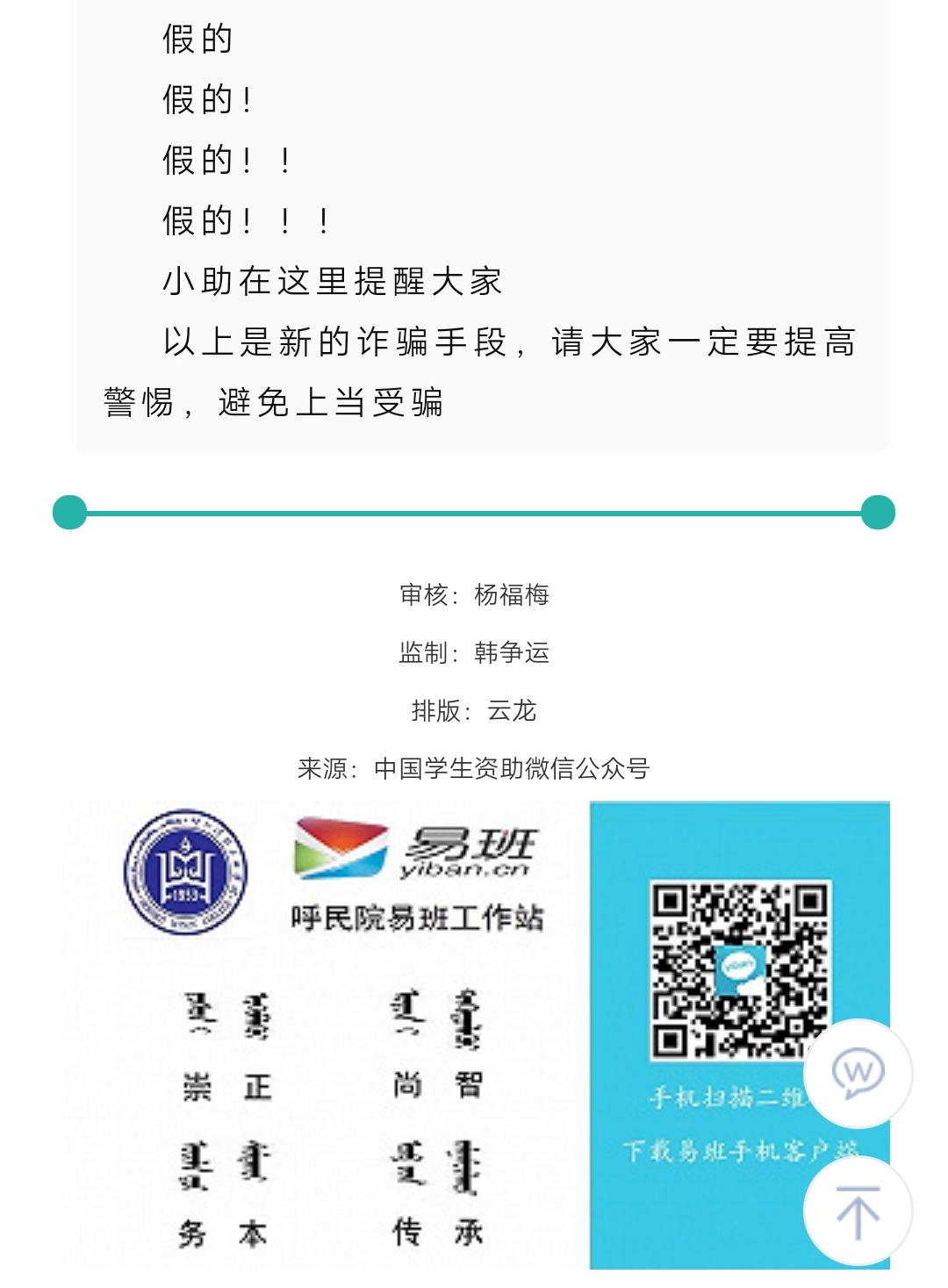 警惕!全国学生资助管理中心发布2020年第1号预警!