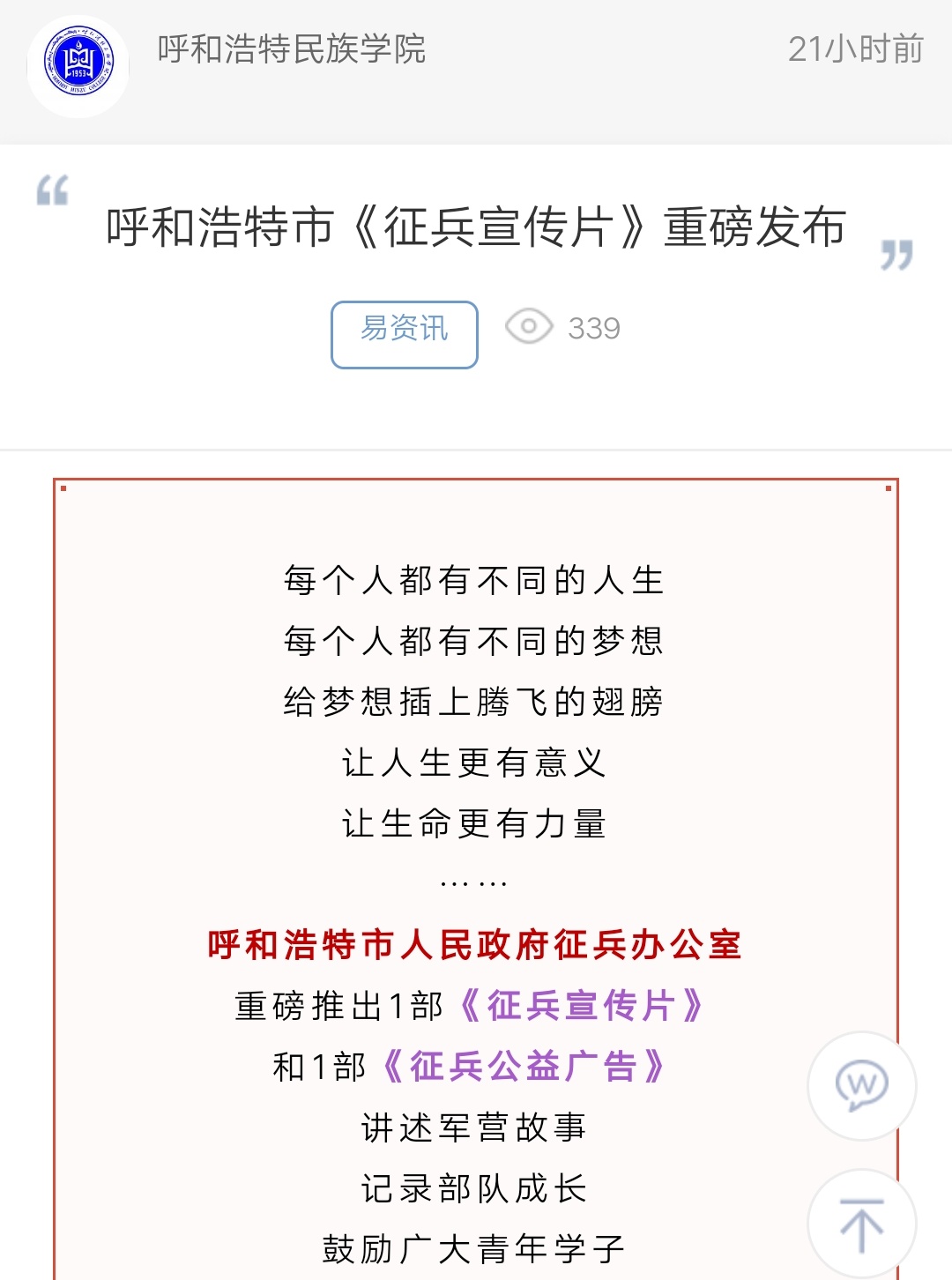 下一条:青城征兵 致全市大学毕业生的一封信(附大学毕业生征兵政策)