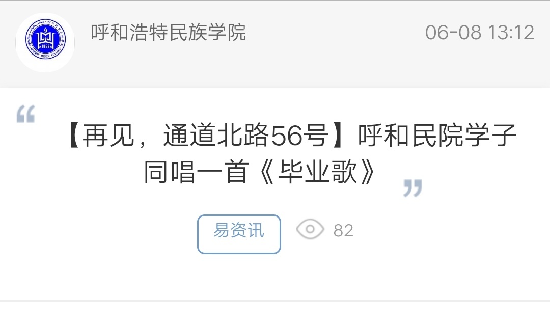 【再见,通道北路56号】呼和民院学子同唱一首《毕业歌》