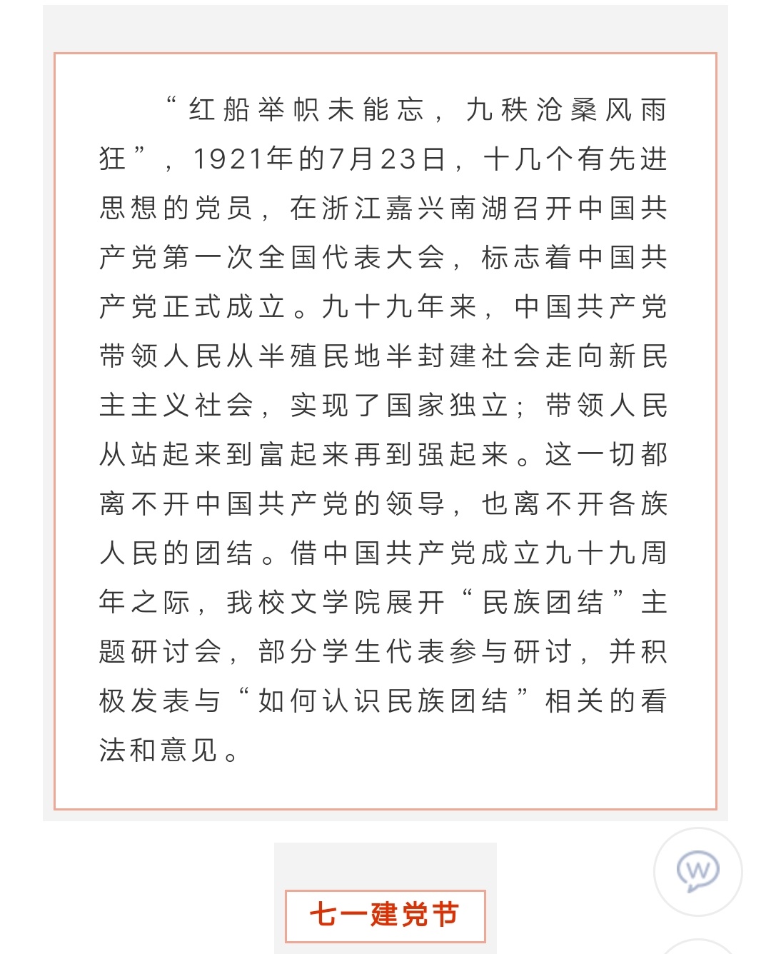 文学院党总支学生党支部祝建党九十九周年生日快乐!
