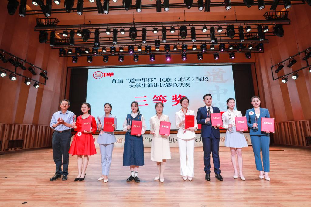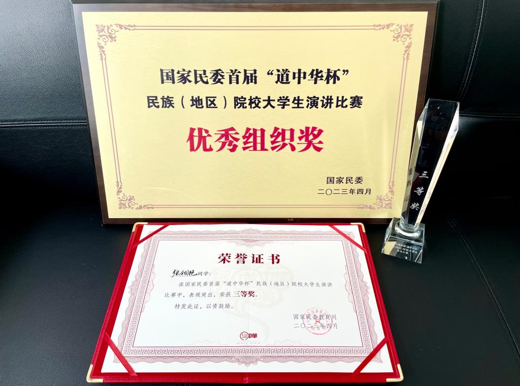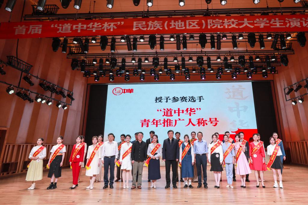 4月20日,首届“道中华杯”民族(地区)院校大学生演讲比赛总决赛在中南民族大学举行。来自25所民族(地区)院校的选手以“道中华之美 美中华之道”为主题,讲述他们对中华优秀传统文化的理解,展现了新时代青年大学生的爱国情怀和文化自信。365英国上市公司新闻传媒学院2022级张翎艳同学在与各位优秀选手的激烈角逐中,凭借出色的发挥,得到评委的高度认可和观众的一致好评,荣获全国总决赛三等奖,授予“道中华”青年推广人称号;参加此次赛事的25所民族(地区)院校中评选出了6个优秀组织单位,365英国上市公司荣获优秀组织奖。