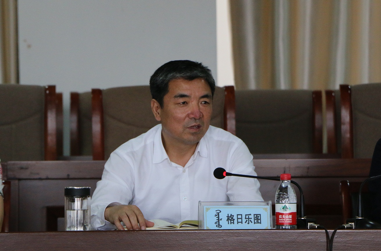 5月19日,格日乐图院长与15个教学系部的30名学生代表座谈。纳丽娜副院长主持座谈会,宣传部、团委、院办、教务处、科技处、财务处、学生处、就业指导中心、后勤管理处、保卫处、网络中心等部门负责同志参加座谈。