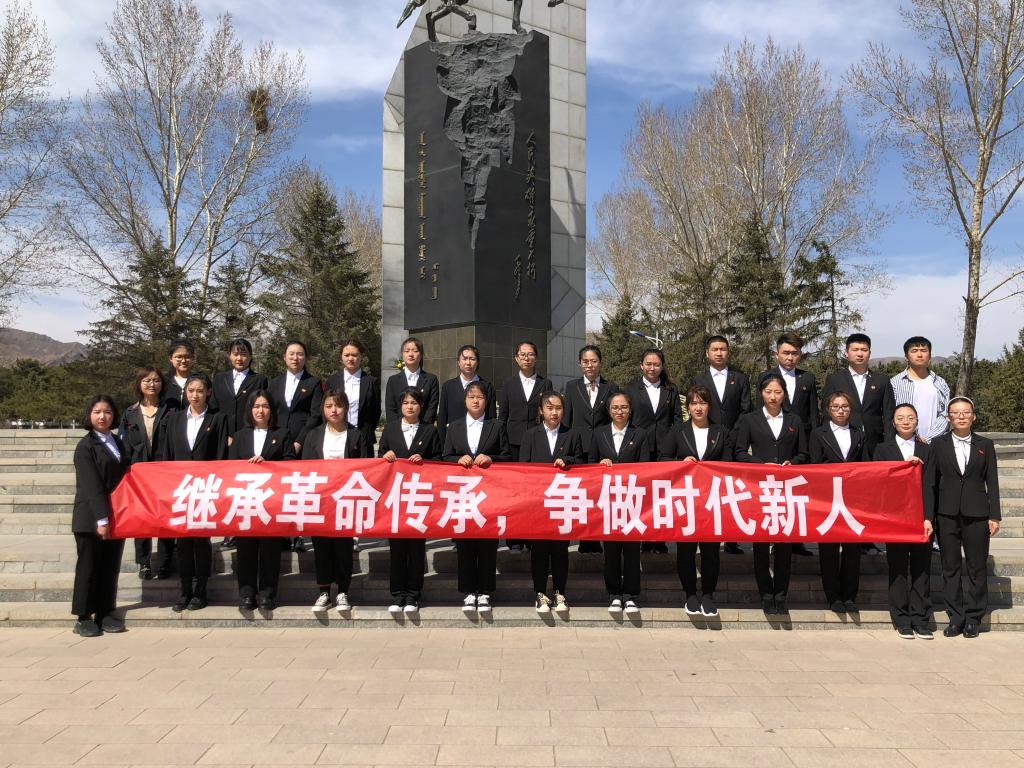 为传承红色基因,弘扬英烈精神,4月4日中午,外语系学生党支部在内蒙古革命烈士陵园组织开展了“继承革命传统,争做时代新人”主题党日活动。本次活动由学生第二党支部书记雷旭平老师负责,两个支部的党员参加。