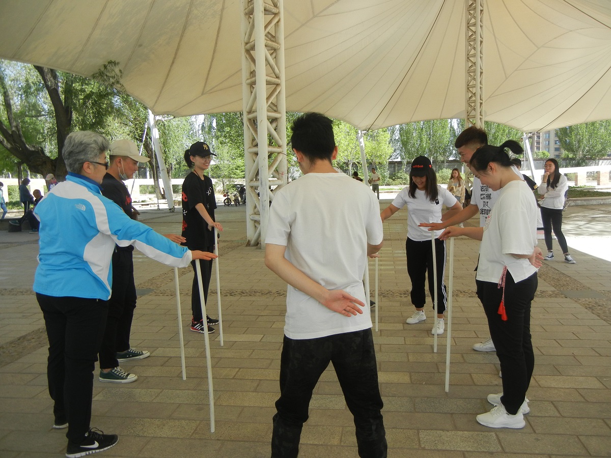 活动成员以团队形式进入园区,建立活动场地和卫生角。在经过简单快速的分组之后,顺利的举行了“不倒森林,七手八脚,穿越极限”等一系列游戏活动,在考验个人能力和体力的同时,也提高了团队的相互配合、分工协调能力。活动过后,大家围坐一圈,在分享食物的同时也分享着在日常学习生活中的收获。