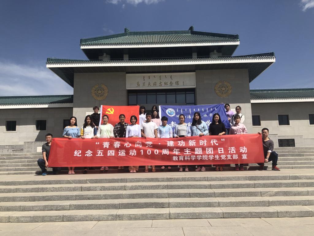 为了深入学习革命先辈的革命精神,庆祝祖国70周年华诞,纪念五四运动100周年,提升教育科学学院学生党员思想认识与觉悟,教育科学学院于6月2日组织开展了学生党支部“青春心向党 建功新时代”纪念五四运动100周年主题团日活动。由安梅琴老师带领19名学生党员来到乌兰夫同志纪念馆参观学习。