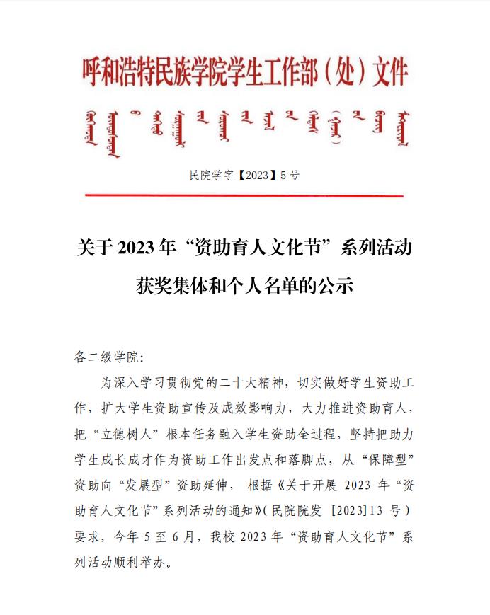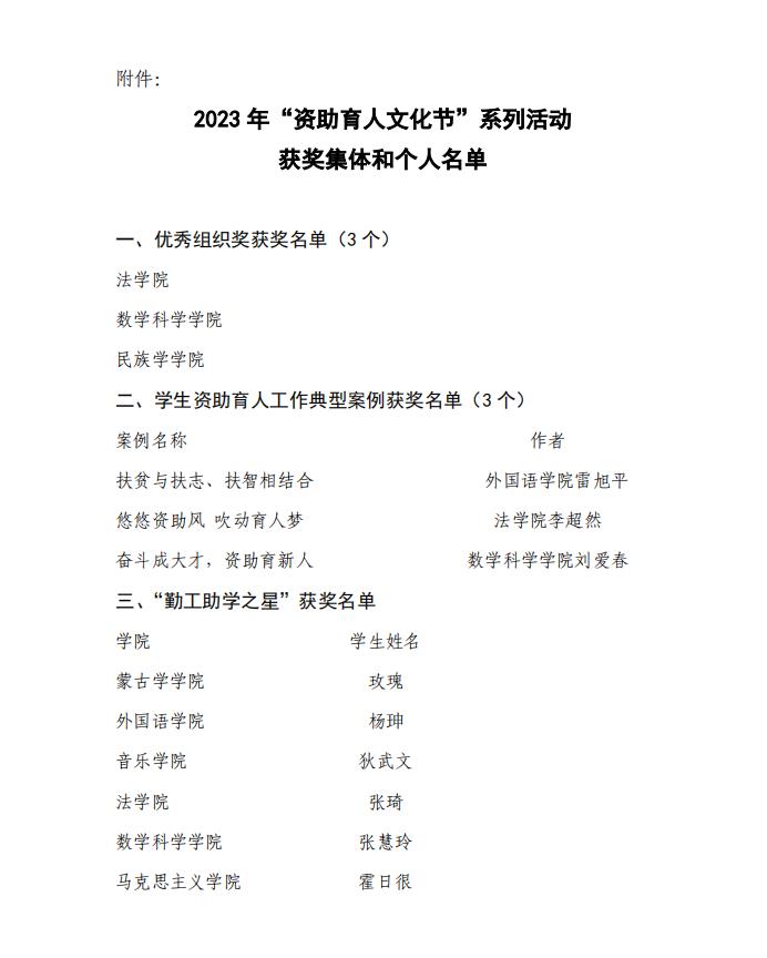关于2023年“资助育人文化节”系列活动获奖名单的公示