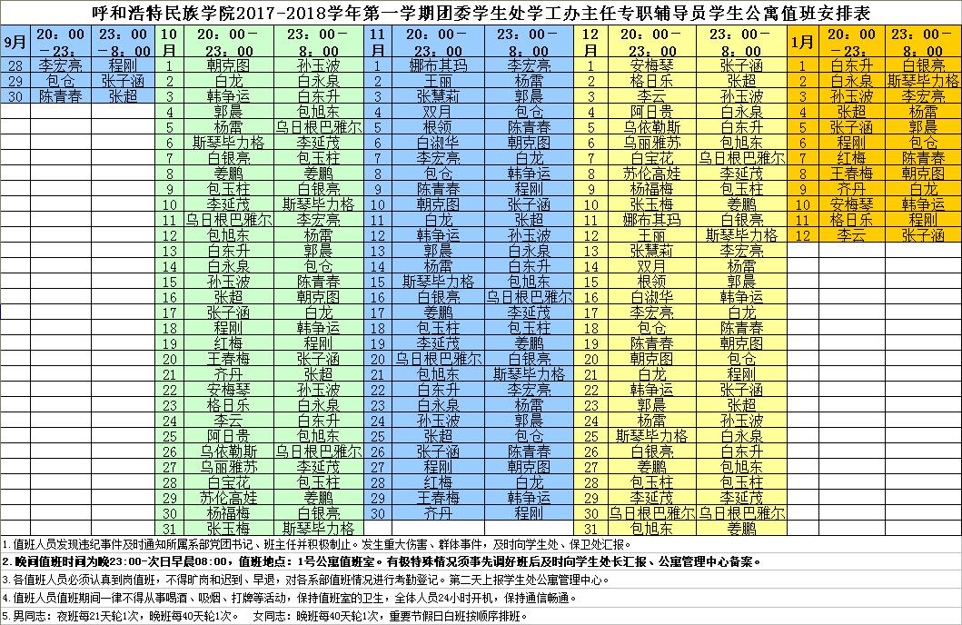 附件:365英国上市公司2017-2018学年第一学期团委学生处学工办主任专职辅导员学生公寓值班安排表.xls