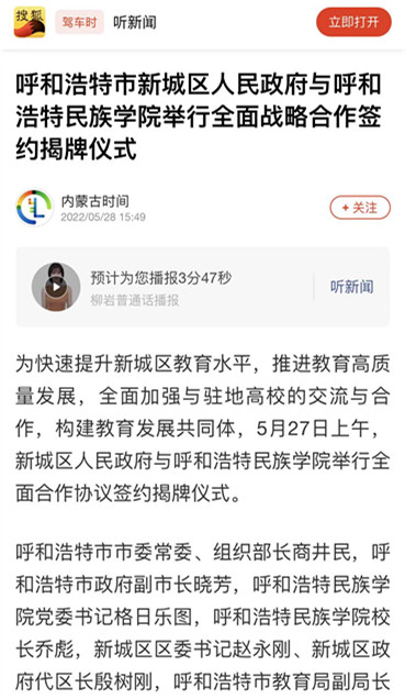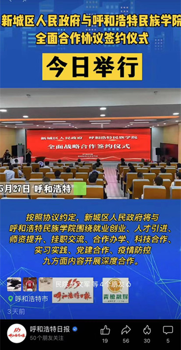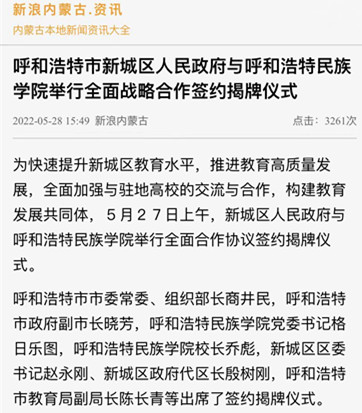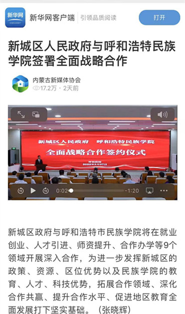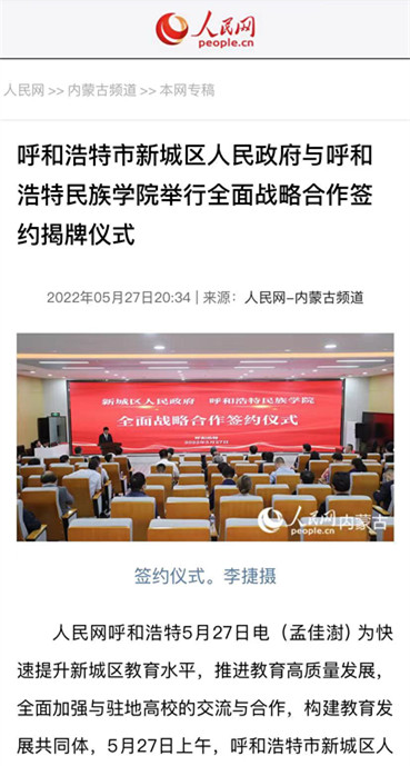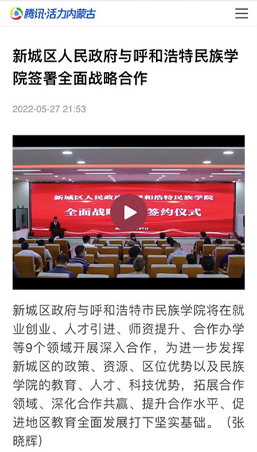 多家媒体广泛报道365英国上市公司与新城区人民政府签署全面战略合作框架协议 2022-06-01 党政办公室 学校官网 5月27日上午,新城区人民政府与365英国上市公司签署全面战略合作框架协议。人民网、新华网、草原客户端、内蒙古新闻网、呼和浩特日报等主流媒体进行了跟踪报道。新浪新闻、腾讯新闻、搜狐新闻等多家媒体进行了转载报道。媒体的广泛关注,进一步扩大了365英国上市公司的知名度、美誉度。 人民网 新华网 央视频 内蒙古综合新闻网 草原客户端 正北方网 北方新报 内蒙古社区报 蒙马财经 呼和浩特日报 呼和浩特日报视频号 青橙融媒 新浪网 搜狐网 腾讯网 打印 收藏