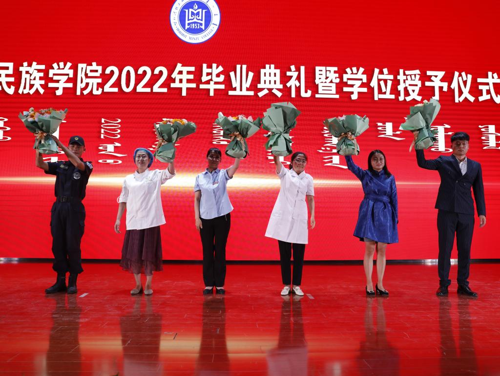 乔彪校长以《激扬青春不散场 踔厉奋发再远航》为题,向全体毕业生送上临别寄语和真挚祝福。在讲话中,乔彪校长向现场和直播屏幕前的同学们致以最热烈的祝贺,向为同学们的成长、成才付出心血和辛勤劳动的师长以及亲友们,致以衷心的感谢和崇高的敬意。乔彪校长指出,2022届毕业生与党同心,与祖国同向同行,和学校一起见证了党和国家的一个个历史性时刻,你们一路与民院同呼吸、共奋进,是学校建设发展的亲历者、见证者、参与者。民院也一路与你们心连心、情系情,见证了你们的成长与进步,分享了你们的成功和喜悦。在离别之际,乔彪校长向毕业生提出四点希望:一是希望你们厚植家国情怀,做新时代矢志不渝的爱国者。要把“爱国”两字烙印在心间,把个人前途与国家命运紧密相连,将小我融入大我,把忠诚书写在党和人民事业中,把青春播撒在民族复兴的征程上,以实际行动践行“请党放心、强国有我”的青春誓言。二是希望你们坚持终身学习,做新时代奋力奔跑的追梦人。要把学习当作一种生活习惯、一种人生境界,不断提升自我、完善自我、更新自我,增强本领,增长本事,将个人梦与中国梦有机融合,以追梦人和生力军的姿态,努力成就敢于有梦、勇于追梦、勤于圆梦的人生。三是希望你们永远脚踏实地,做新时代勇毅笃行的实干家。要有“心怀不惧,方能翱翔于天际”的王者气魄,以“长风破浪会有时,直挂云帆济沧海”的奋斗姿态,磨砺“千磨万击还坚劲,任尔东西南北风”的坚强意志,把脚踏实地、锲而不舍的坚强毅力和埋头苦干、久久为功的优良品质,作为人生航船上的压舱石,不驰于空想,不骛于虚声,勇做只争朝夕的行动者、脚踏实地的实干家。四是希望你们赓续红色血脉,做新时代团结奋进的石榴籽。要一如既往传承民族团结基因,主动肩负起维护祖国统一和民族团结的使命和担当,自觉做铸牢中华民族共同体意识的实践者、传播者、守护者,让民族团结之花盛开在你们为梦想而奋斗的道路上。