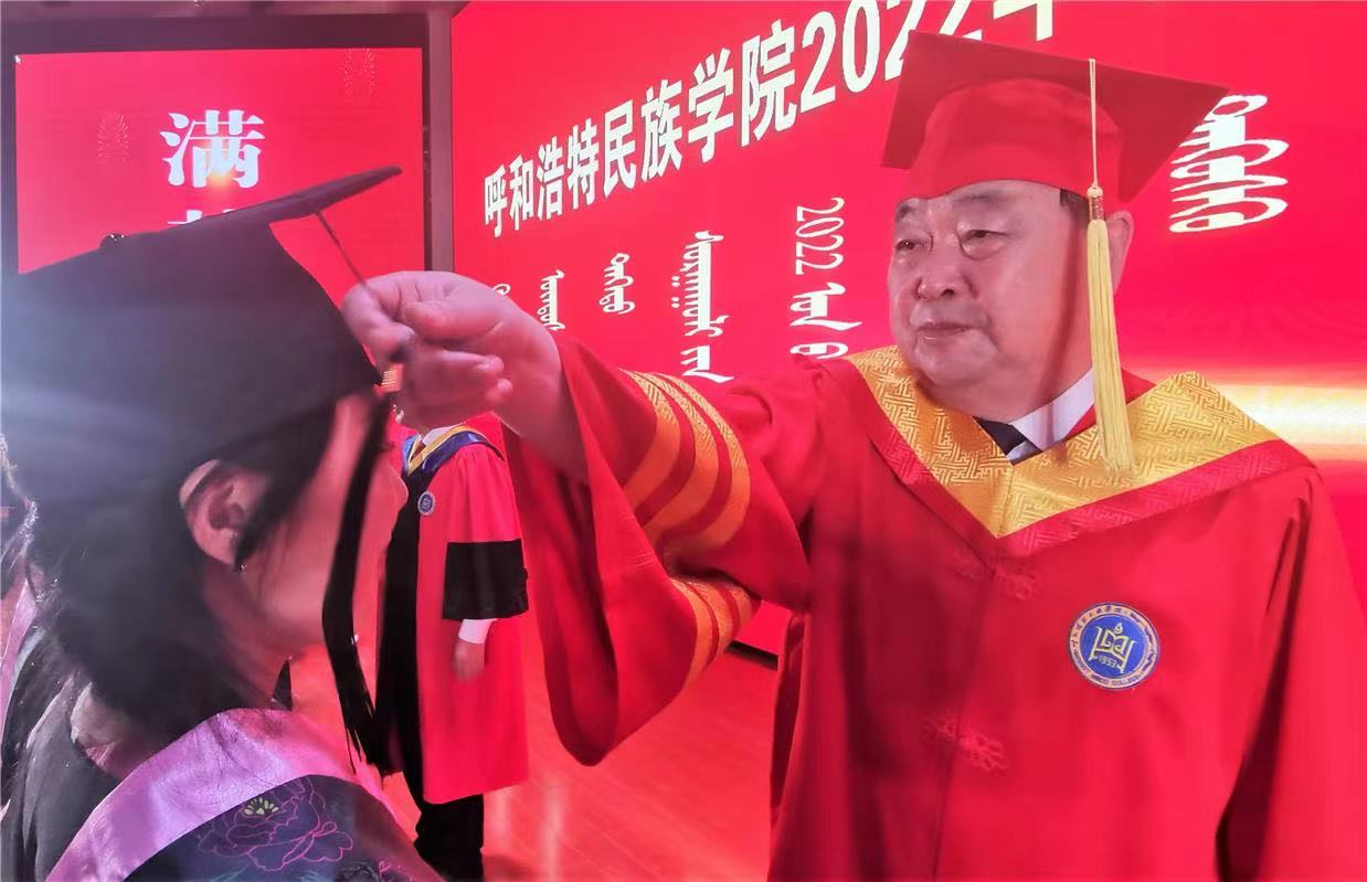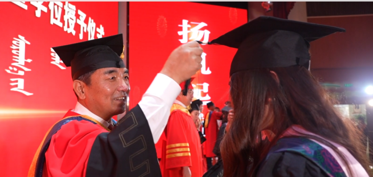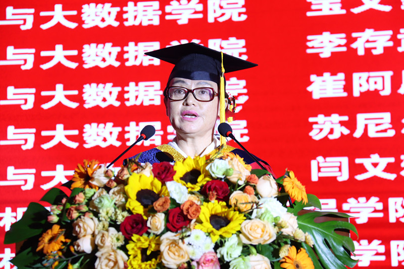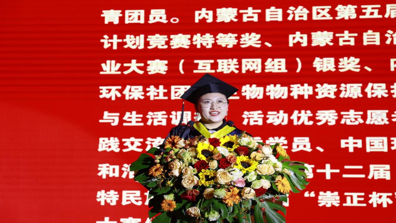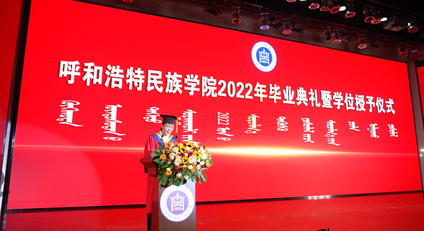 学位委员会副主任、党委委员、教务处处长额尔敦布和教授作为教师代表发言,他真诚祝贺同学们顺利完成学业,希望同学们争做有正气、有责任、有原则、有志向的青年一代。