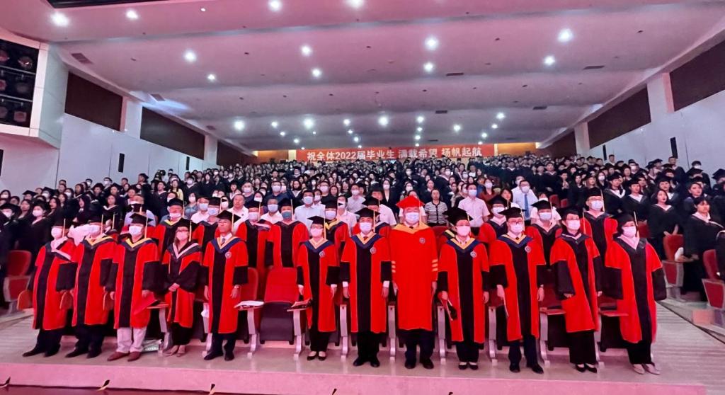 典礼上,全体校领导共同为到场的1230名毕业生颁发证书、拨正流苏。