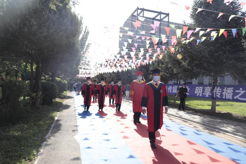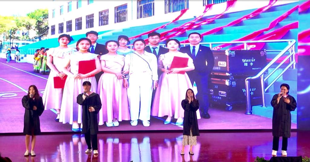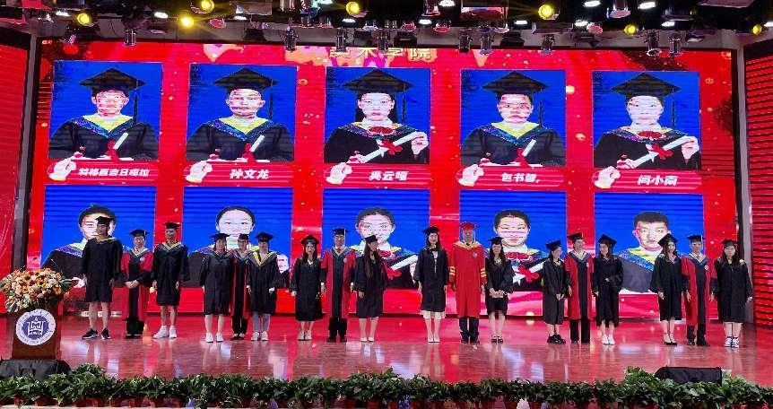 典礼开始前,各二级学院毕业生代表在会场进行了青春歌曲大联唱。典礼现场播放了由学生工作部制作的毕业纪念短片《飞得更高》。