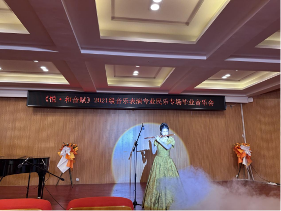 4月14日下午,音乐与舞蹈学院在音乐楼多功能厅举办“悦·和音赋”2021级音乐表演古筝、竹笛专业毕业音乐会,学院教职工、学生亲友、在校学生到场观看演出。