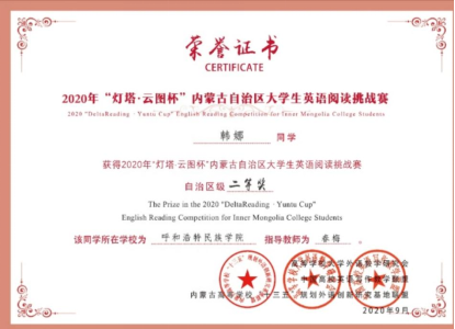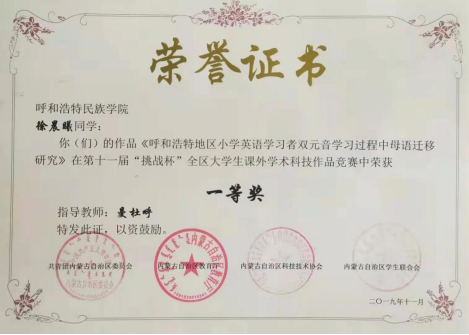 郭志芳同学获得“外研社•国才杯”全国英语演讲大赛内蒙古赛区三等奖