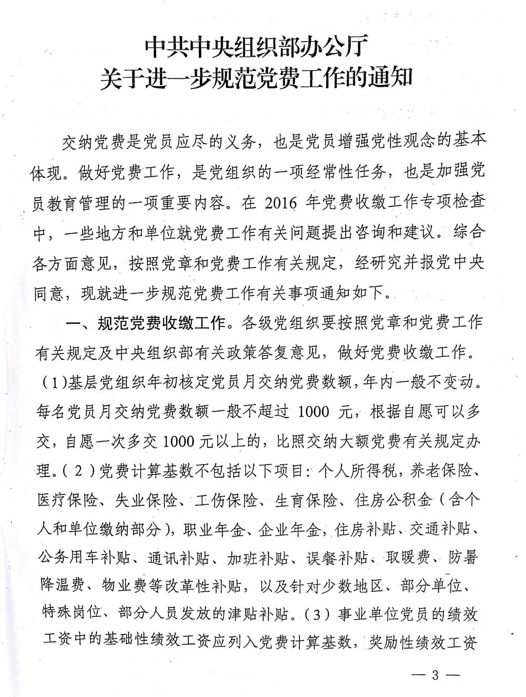 近日,中共中央组织部办公厅下发《关于进一步规范党费工作的通知》(组电明字[2017]5号)文件,现转发给你们,请