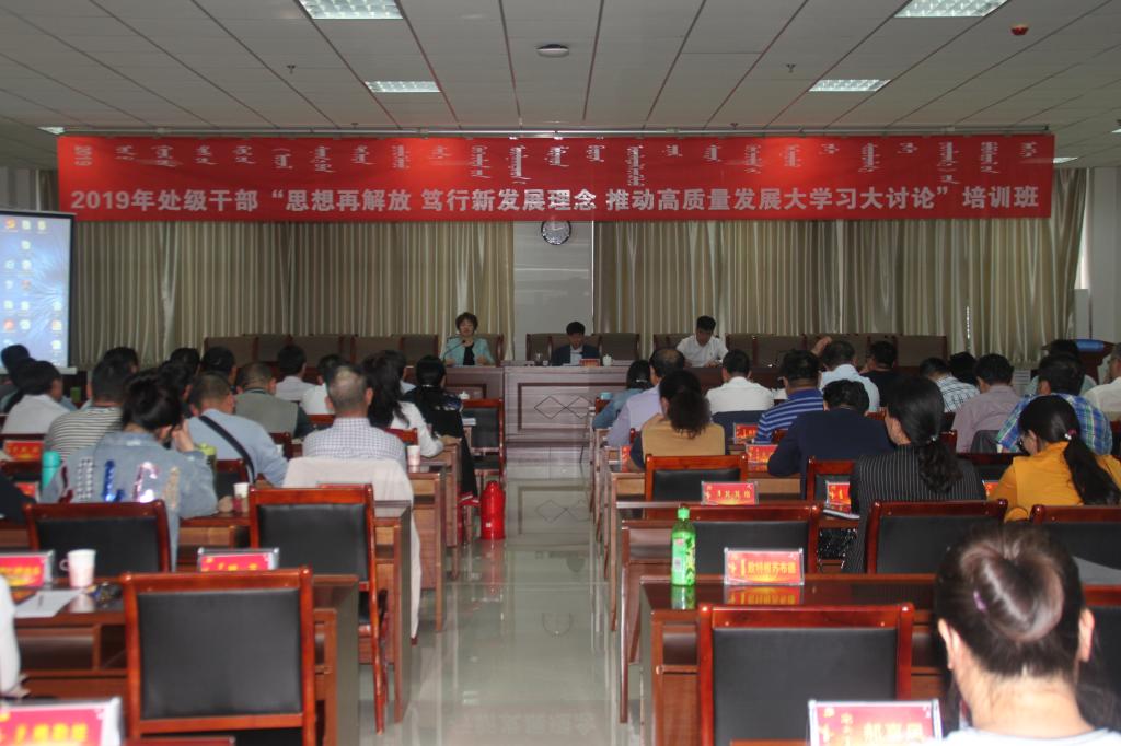 5月30日下午,学校2019年处级干部“思想再解放,笃行新发展理念,推动高质量发展大学习大讨论”培训班第三次讲座在综合楼12楼会议室举行。党委书记孙国权作了题为《解放思想 真抓实干 推动学校高质量发展 全面开创新时代学校事业发展新局面》的专题讲座。学校党委委员、全校处级干部聆听了讲座。党委委员、组织部部长吴阿古拉主持会议。