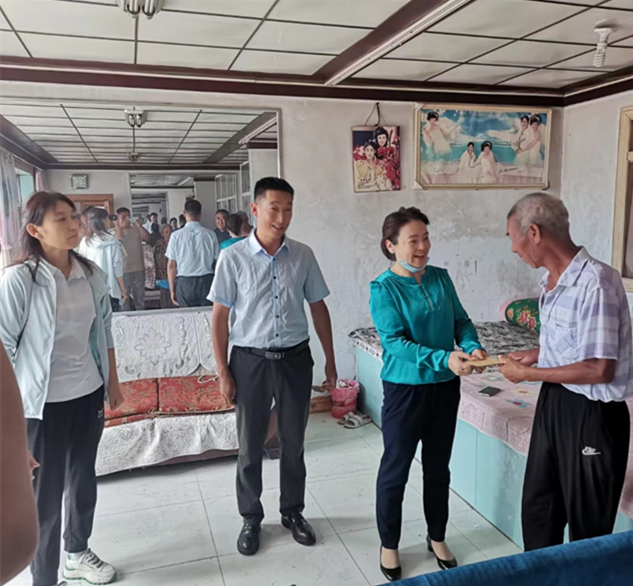 随后,胡春梅一行深入嘎查实地走访嘎查老党员及困难群众,详细询问他们的身体状况、生活情况和家庭情况,并送上慰问金,表示今后将切实加大帮扶力度,一如既往地支持嘎查发展。