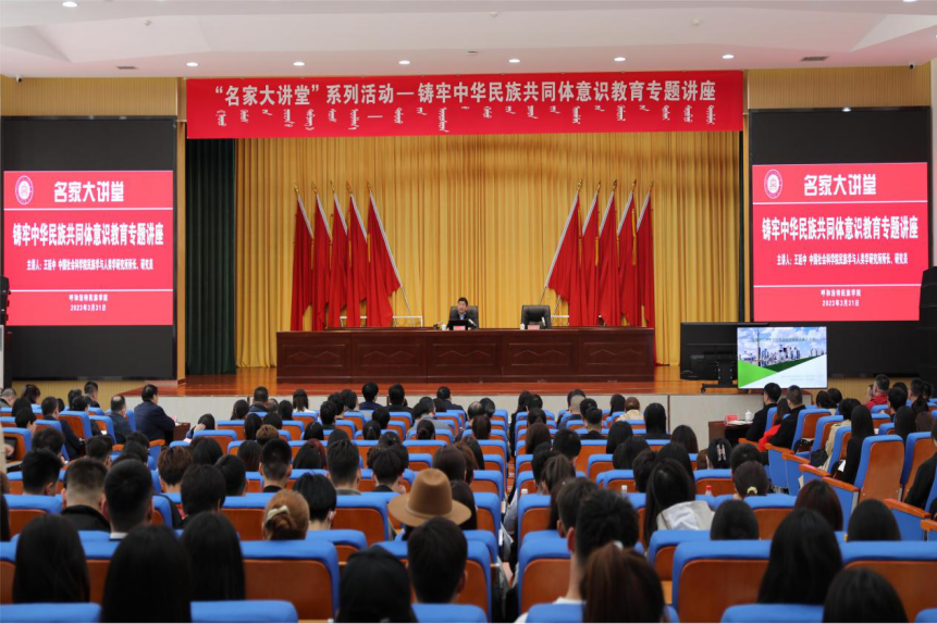 王延中教授为呼民院师生带来精彩的辅导讲座。王教授以《准确把握铸牢中华民族共同体意识重大关系》为题,从“全面准确完整把握中央民族工作会议精神”“正确理解铸牢中华民族共同体意识四大关系”“深化铸牢中华民族共同体意识理论研究”三个方面,系统阐述铸牢中华民族共同体意识的深刻内涵和精髓要义的基础上,结合民族理论政策研究工作经验和具体事例,就深化铸牢中华民族共同体意识理论研究的必要性与紧迫性、重点方向、工作思路与关键举措等方面进行了深入阐述。