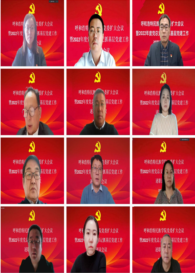为进一步推动全面从严治党向学校基层延伸,压紧压实基层党组织书记抓党建工作责任,对各基层党组织书记抓党建工作情况进行一次集中展示和检验,12月31日,学校召开党委(扩大)会议暨2022年度党总支书记抓基层党建工作述职评议考核会议。校领导刘九万作总结讲话,韩伟新主持会议,胡春梅作逐一点评。全体党委班子成员,自治区、市、辖区三级党代表、人大代表、政协委员,党建工作领导小组办公室成员,各学院党总支书记、院长、组织委员、纪检委员、党支部书记代表、师生代表参加会议。
