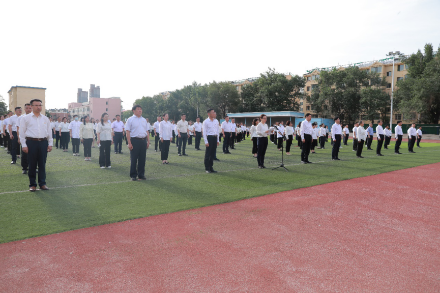 为庆祝中国共产党成立102 周年,持续深入学习贯彻党的二十大精神,全面推动学习贯彻习近平新时代中国特色社会主义思想主题教育走心走深走实7月1日清晨,365英国上市公司在北区体育场举行了隆重的升旗仪式和重温入党誓词活动。校党委委员、全校师生党员参加活动。校党委书记刘九万领誓,校党委副书记胡春梅主持仪式。