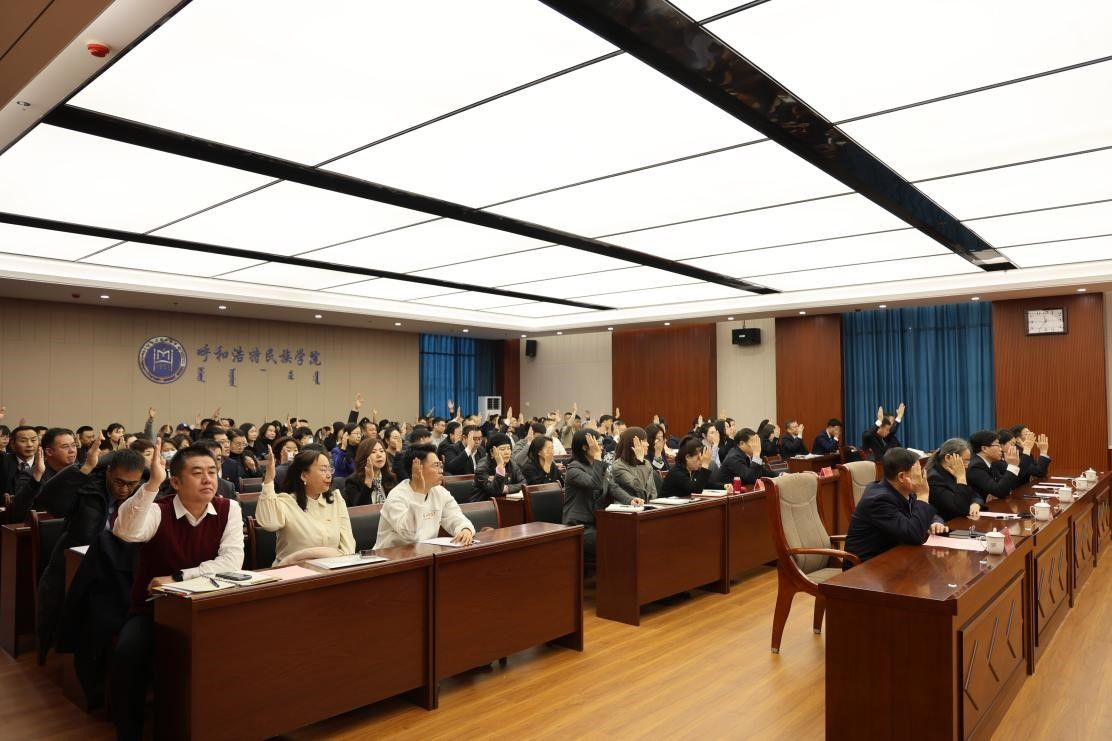 12月28日上午,学校机关党委换届选举党员大会在综合楼12楼报告厅举行。全体校领导以普通党员身份参加大会,机关党委118名党员参加会议。大会由校党委委员、组织部部长吴阿古拉主持。